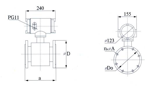 分体式电磁流量计根据法拉第电磁感应原理,在与测量管轴线和磁力线相垂直的管壁上安装了一对检测电极,当导电液体沿测量管轴线运动时,导电液体切割磁力线产生感应电势,此感应电势由两个检测电极检出,数值大小与流量成正比例,其值为: